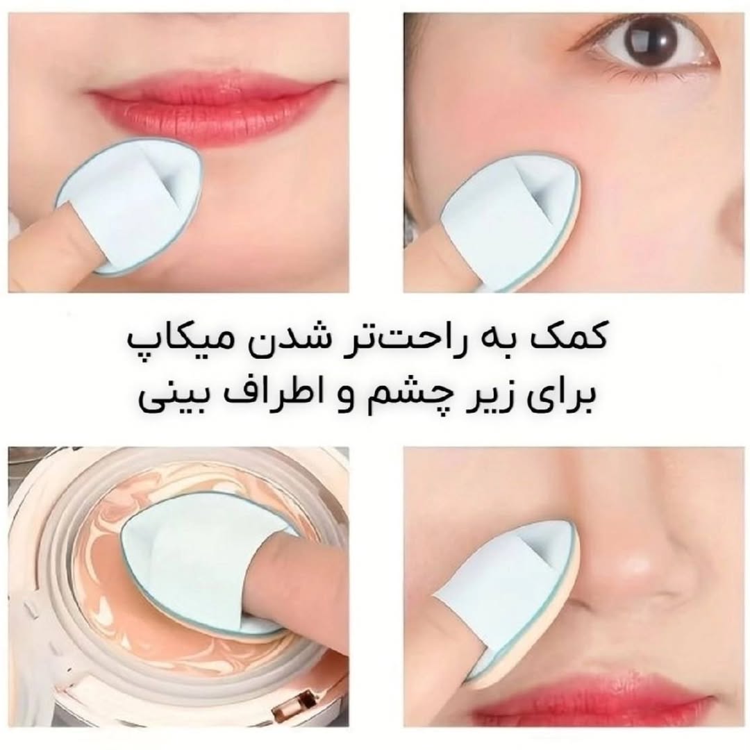 پک 2عددی 🥰 کیفیت عالی قابل شستشو صاف کننده پوست دارای جای انگشت دارای بافت نرم و لطیف ابعاد پد: 3 × 4 سانتی متر خاصیت پوشش دهی یکدست قابل استفاده برای صورت و اطراف چشم مناسب جهت پخش کردن کرم پودر و کانسیلر