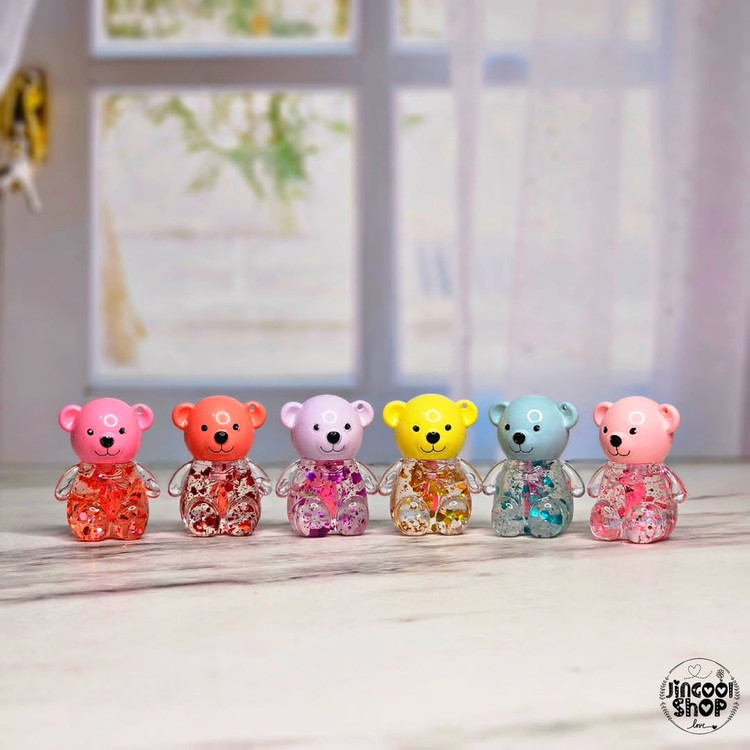 برق لب حرارتی خرسی مجیک در 6 رنگ ظاهری متفاوت رنگ صورتی ملایم روی لب ( بر اساس دمای بدن ) بسیار سبک ماندگاری بالا جذاب و فانتزی بدون چسبندگی روی لب.